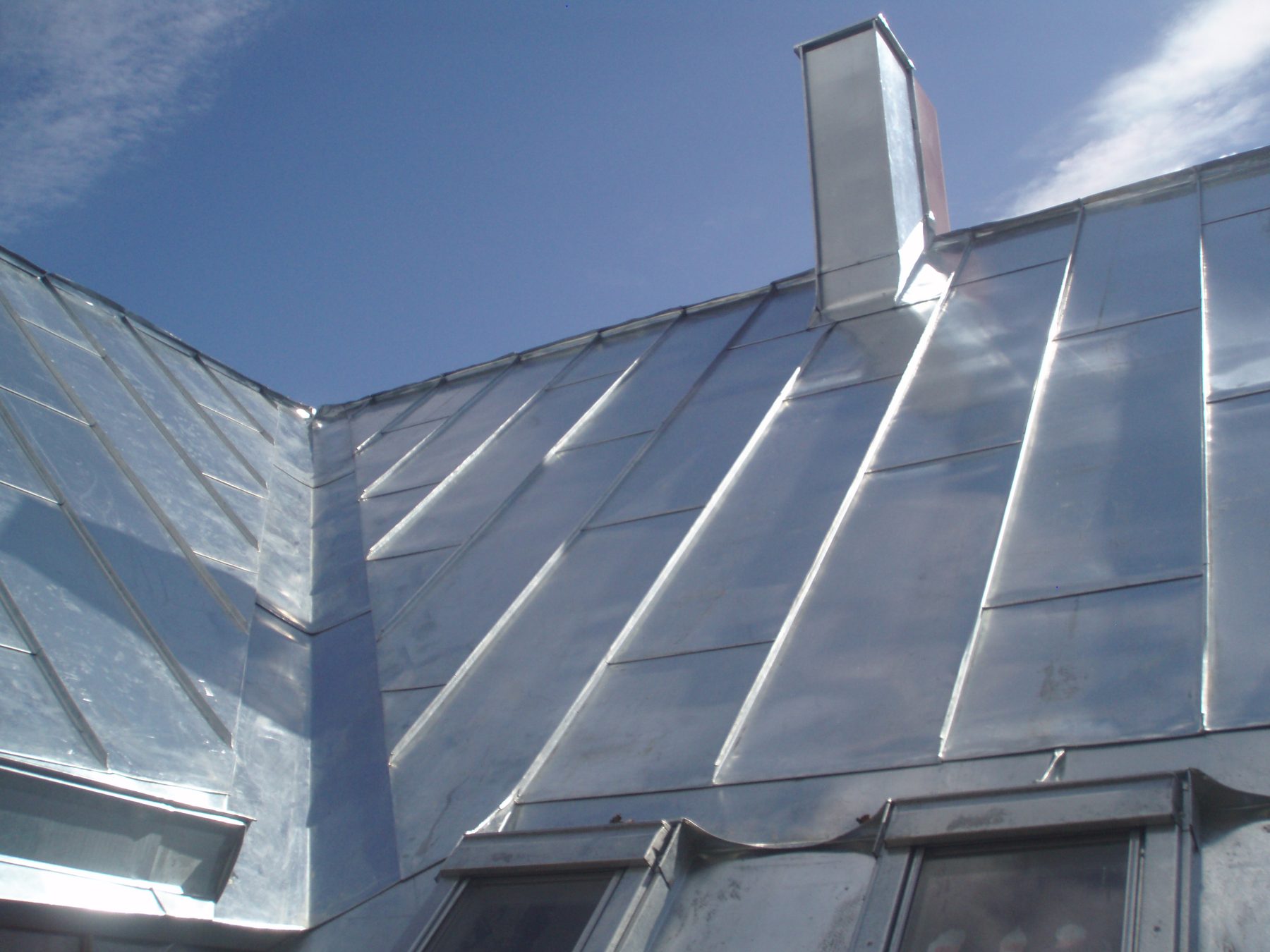 Vi utför alla förekommande arbeten inom byggnadsplåtslageri — plåttak, hängrännor, takkupor, skorstenstäckningar och fasader. Vi arbetar gärna i koppar, zink och andra material; våra plåtslagare är särskilt utbildade för arbete i titanzink.